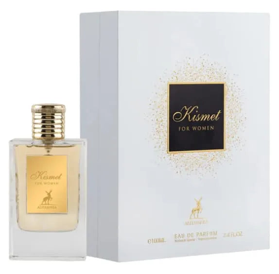 Kismet for Women de Maison Alhambra es una fragancia de la familia olfativa para Mujeres. Las Notas de Salida son chabacano, rosa y jazmín; las Notas de Corazón son nardos y narciso; las Notas de Fondo de Kismet son ámbar y cedro.